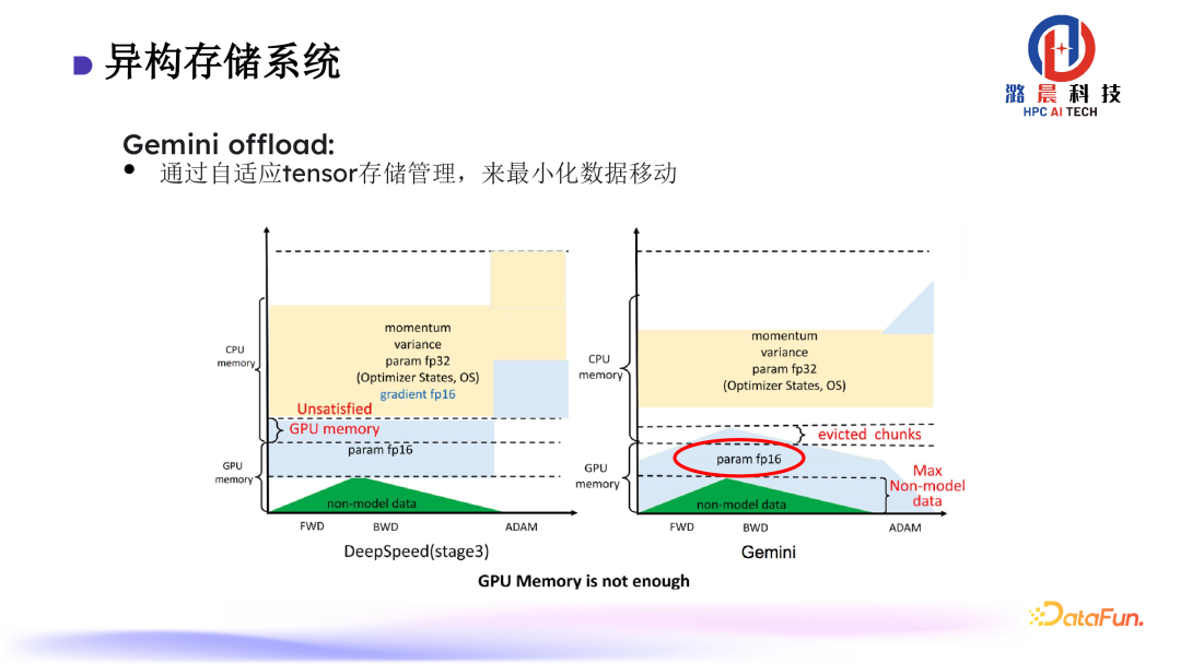 另外,我们的存储管理系统基于 Chunk 来设计。通过将 Tensor 聚合成 Chunk,来减少碎片,提高通信效率。