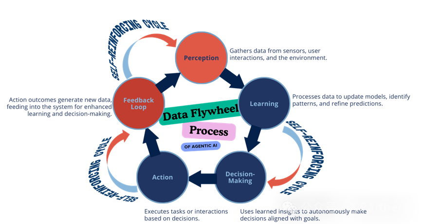 在AI领域,数据飞轮描述了一个循环反馈回路,在这个回路中,持续使用会产生新的数据,从而不断完善模型和算法,提高其有效性。这种迭代过程提高了Agentic AI systems的可扩展性和效率。
