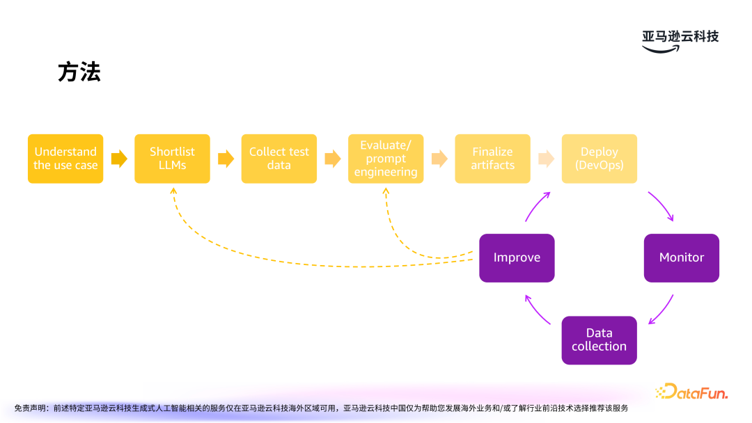 选择合适的应用场景是大模型成功落地的关键。关于用例构建,亚马逊云科技有一套成熟的方法论。