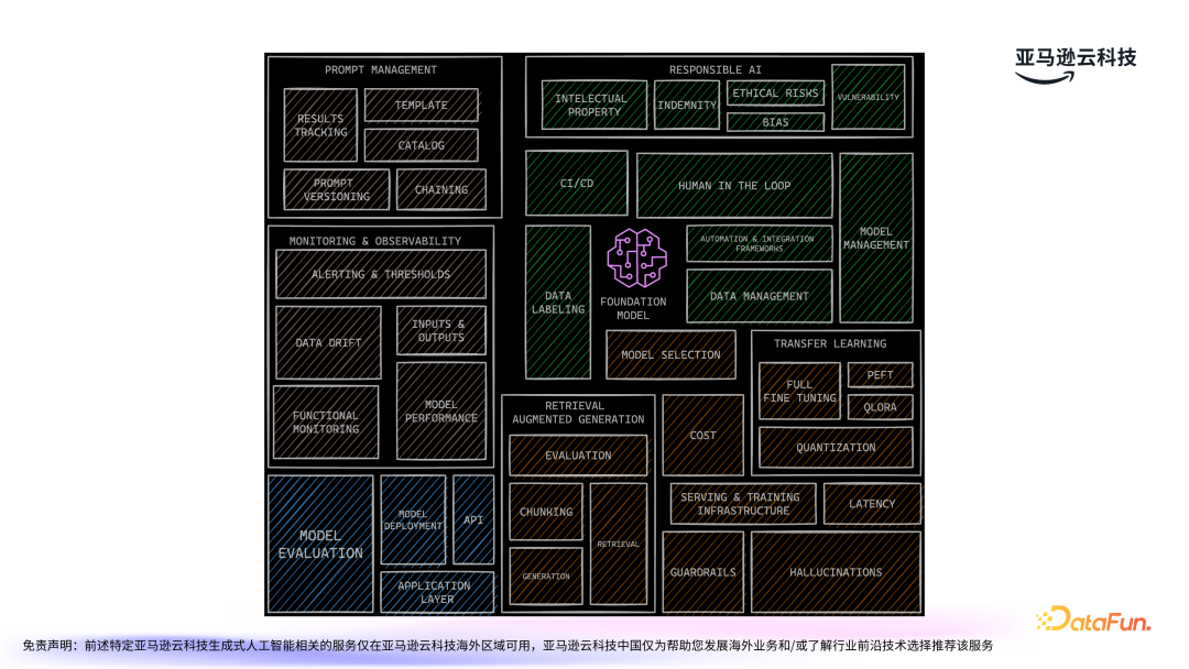 亚马逊云科技提供的云上服务 Amazon SageMaker,依靠其强大的生成式 AI 能力,支持大模型的选择、训练、微调、评估和部署。该平台专门面向数据科学家和机器学习工程师,帮助他们优化生成式 AI 模型,并确保模型能够高效、低成本地应用于生产环境。并提供了工业化的精细管理和监控,使用户可以更高效地实现云端的 LLMOps。