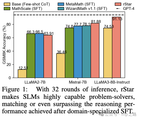 大型语言模型(LLMs)目前在复杂推理方面效果还不是太好。例如,像Mistral-7B这样的最先进模型即使使用了思维链(CoT)等技术,在GSM8K数据集上只能达到36.5%的准确率。尽管微调被证明是提高推理能力的有效方法,但大多数LLMs依赖更高级模型(如GPT-4)合成或提取的微调数据。与此同时,业界一直在探索一种互补且更具挑战性的方法:在没有教师LLM(包括人工专家标注更多数据,以及借助更好的LLM模型做知识蒸馏)的情况下改进推理。