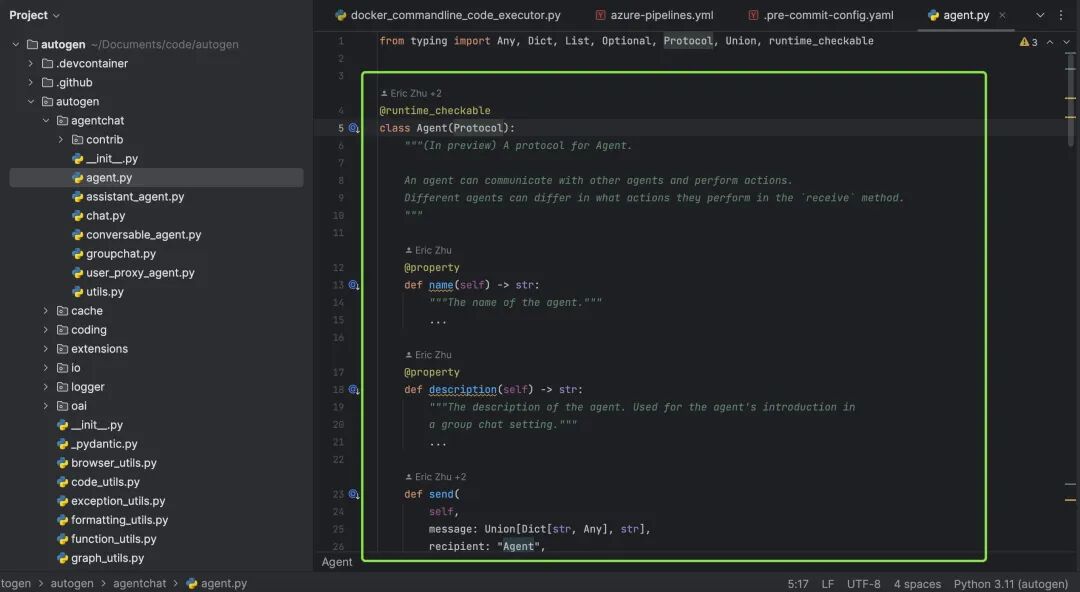 在阅读AutoGen框架代码的过程中,留下深刻印象的并不是实现原理,而是惊奇的发现AutoGen的Python代码非常值得学习。所以本文抛开多智能体模式的实现原理,以及业务应用场景,专门从Python项目的代码组织角度来分析AutoGen这个框架,提炼一些可以借鉴和学习的地方。