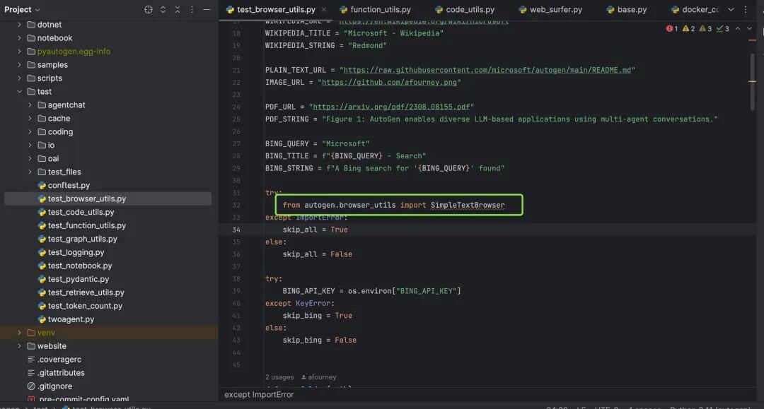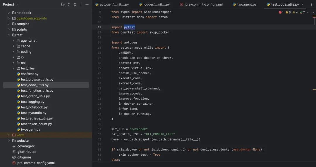 AutoGen仓库中维护了一个完善的测试套件,确保了每次更新后框架的功能都能得到验证。测试套件这块使用了pytest库。