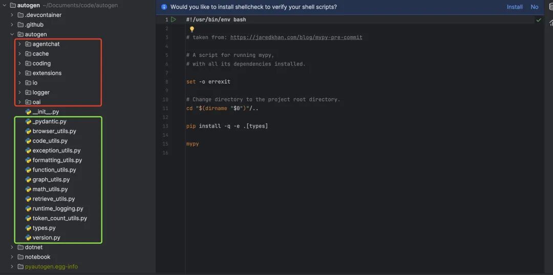 在autogen文件里,又拆分了多个模块文件夹。这里需要特别引起注意的时,作者把各种shared的utils文件全部直接放在autogen文件夹目录。并且模块引用时,通过..和...引用上级模块。
