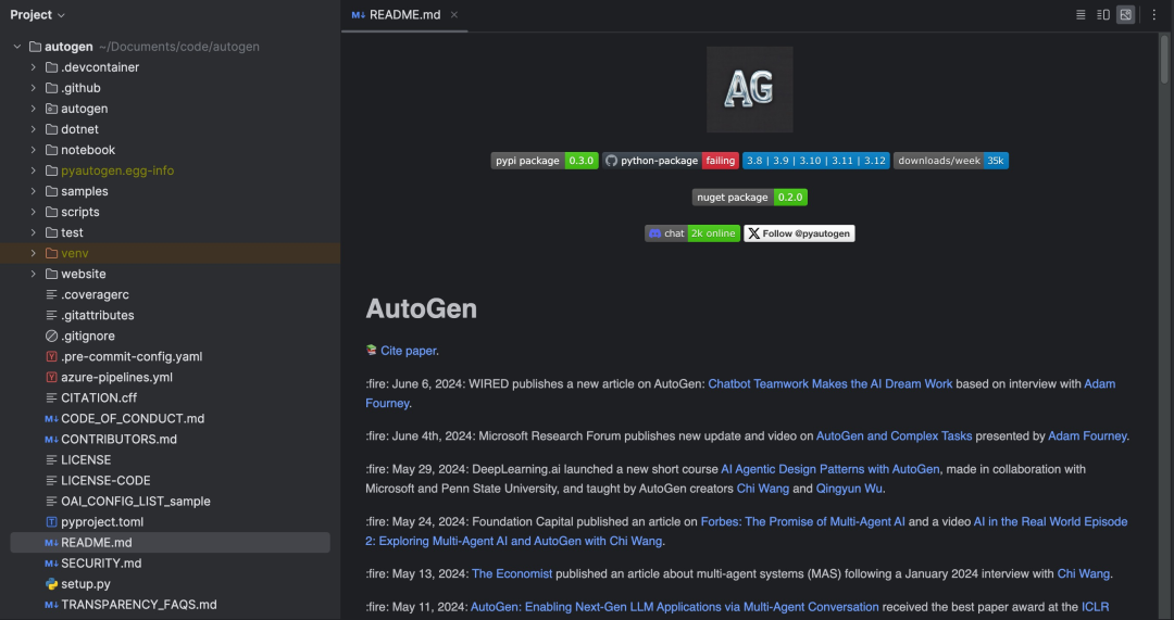 AutoGen 提供了高度可访问的文档,包括详细的 README 文件和外部的文档站点。README 文件对项目进行了高层次的概述,涵盖了安装说明和使用示例,帮助新手快速入门。此外,文档还包含高级主题的详细介绍,如定制智能体工作流、多智能体交互策略和 LLM 集成等。