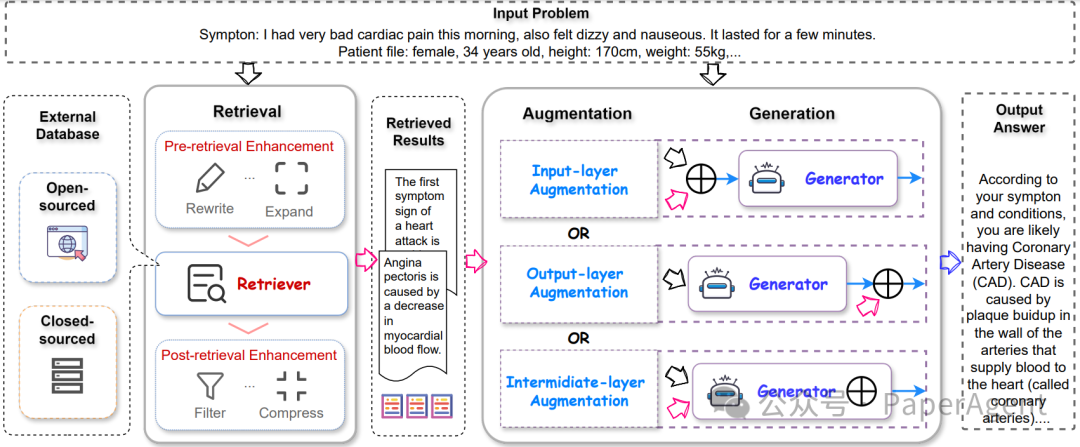 - 前检索和后检索增强(Pre-and Post-retrieval Enhancement):为了提高检索质量,提出了多种策略来增强检索器的输入和输出。这包括查询扩展、查询重写和查询增强等方法。