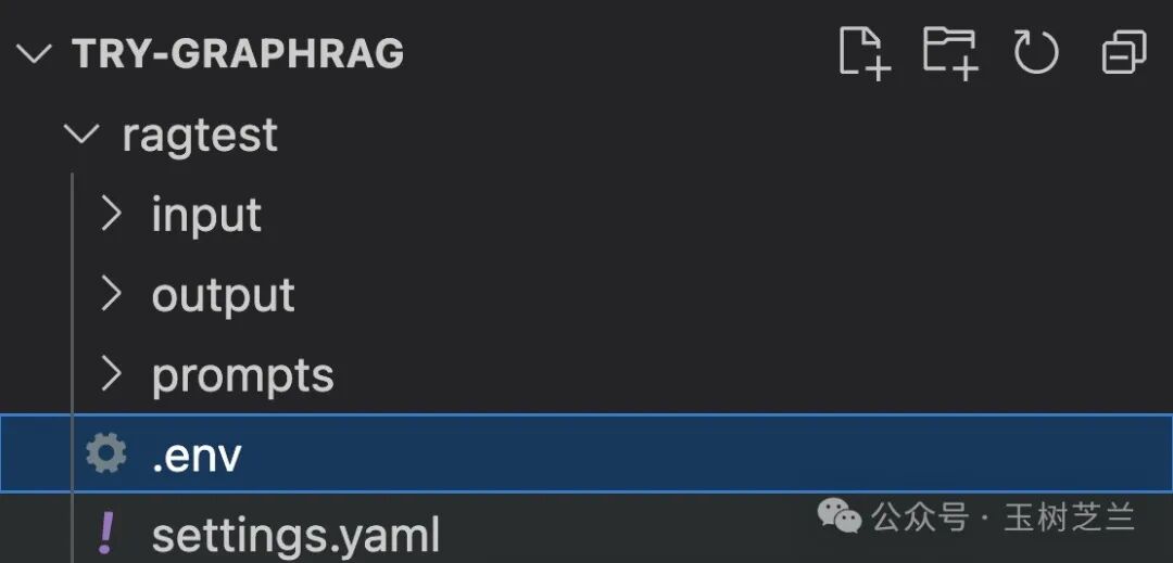 我们先设置这个 .env 文件,里面需要填入一些配置。这些配置通常包括 API 密钥、模型选择等重要参数,它们对于 GraphRAG 的正常运行至关重要。