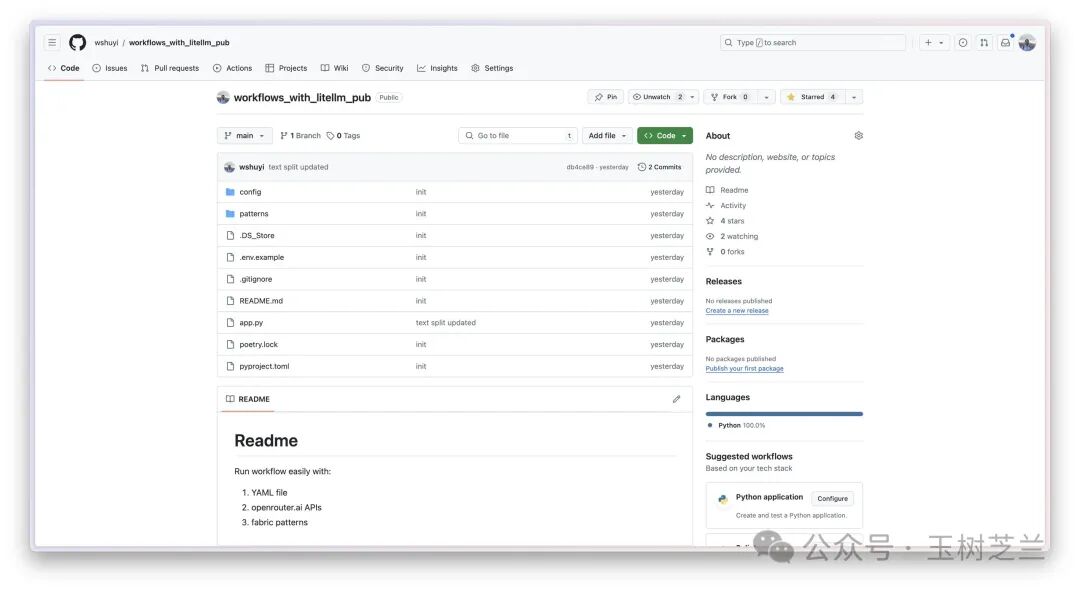 为了让 AI 工作流更加简单,我做了一个工具,并且开放在了 Github 上面,网址在这里。(https://github.com/wshuyi/workflows_with_litellm_pub)如果你觉得好用,别忘了给加颗星啊。