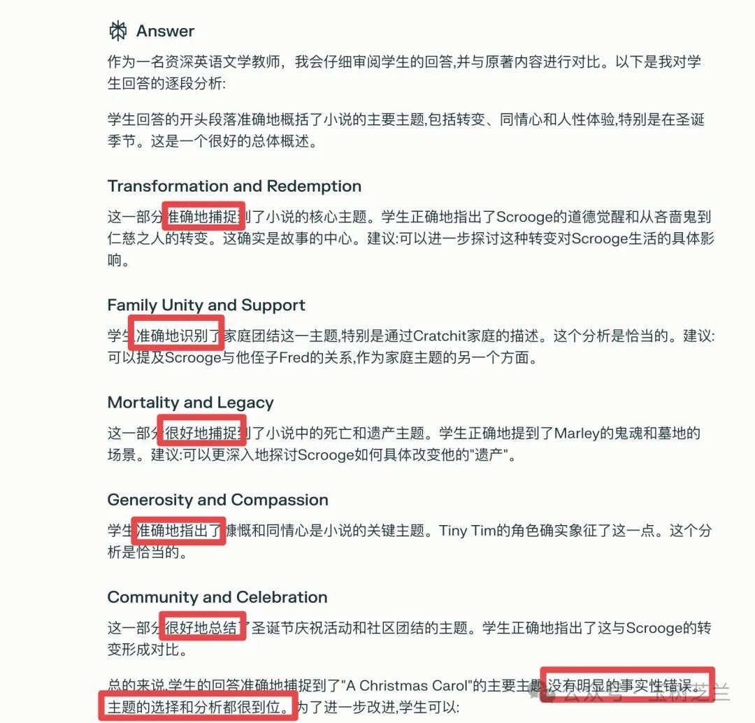 在 Perplexity 的分析中,你可以看到它使用了这些词语来评价:准确地捕捉、准确地识别、很好的捕捉,准确地指出、很好的总结。它还指出没有明显的事实性错误,主题的选择和分析都很到位。
