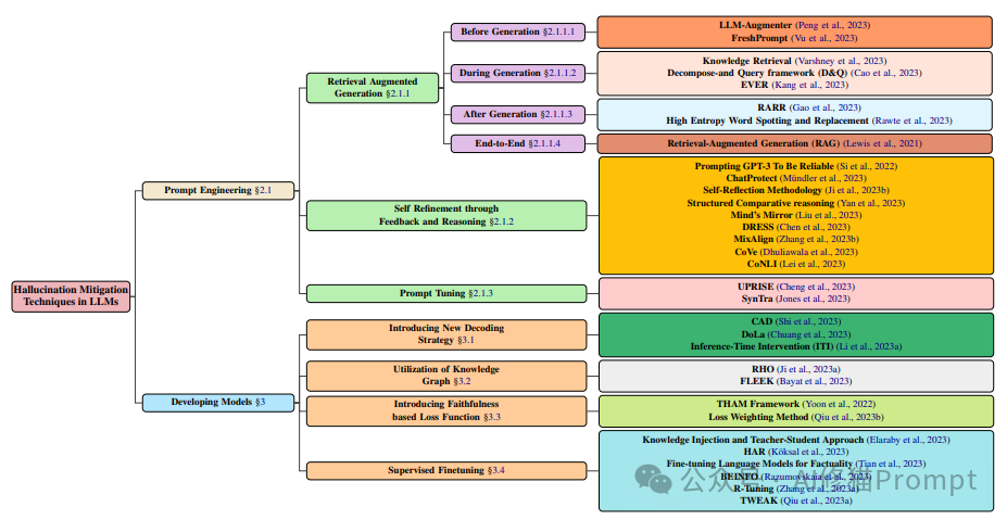 根据最新研究,我们可以将幻觉缓解技术分为以下几大类: