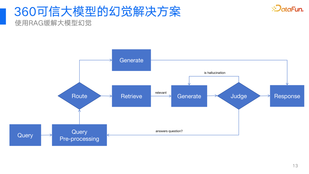 对于事实性、政治性、严肃性问题,需要通过特定的知识库,进行知识增强,进一步生成答案。生成的答案依然可能存在幻觉问题,需要分类器判断是否存在幻觉,如果有再进一步缓解。