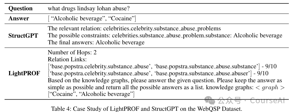 - 相比之下,StructGPT 虽然能够处理相关问题,但未能完全捕捉到所有相关答案。