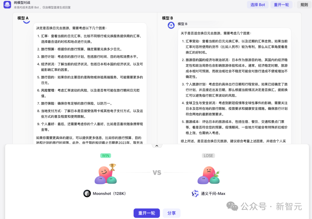 这个过程与前面仍然相同,只是用户不再测试Bot,而是测试评价模型本身。大模型技术仍在高速发展,技术路线也没有完全统一,好坏优劣一直难以评判,各家都在不断自称某项第一。