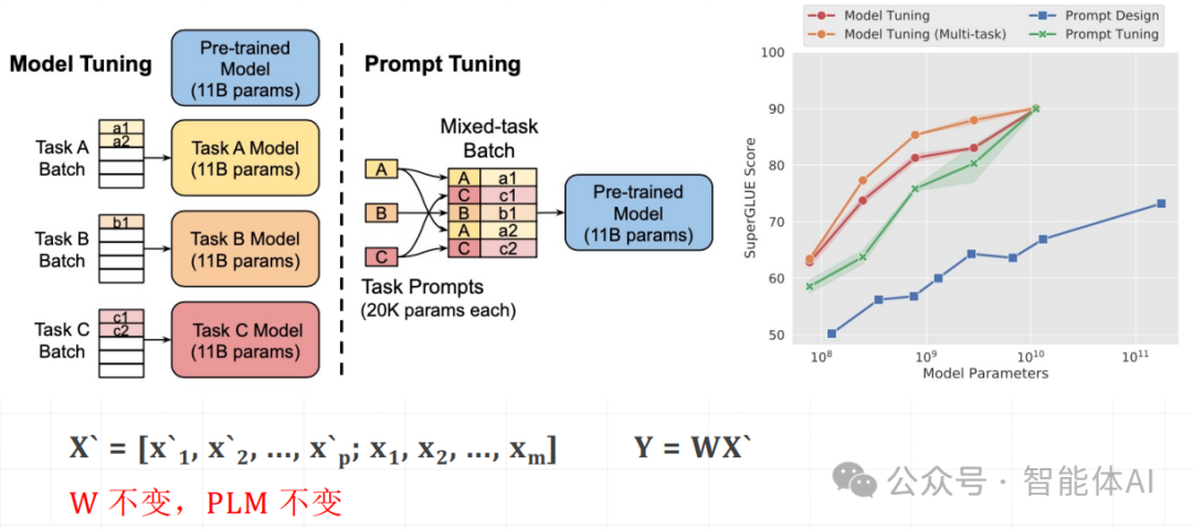 近年来,随着预训练语言模型(PLM)在自然语言处理(NLP)领域的广泛应用,如何在不改变大型语言模型结构和参数的情况下,适配各种下游任务成为了研究的热点。本文将介绍三种主流的参数高效微调(PEFT)技术方案:Prompt Tuning、Prefix Tuning 和 P-Tuning,这些方案都围绕 Token 做文章,并且在保持预训练语言模型(PLM)不变的情况下,实现了模型在不同任务上的适配,并结合快递运输等例子进行比喻说明。一、Prompt Tuning 小模型适配下游任务