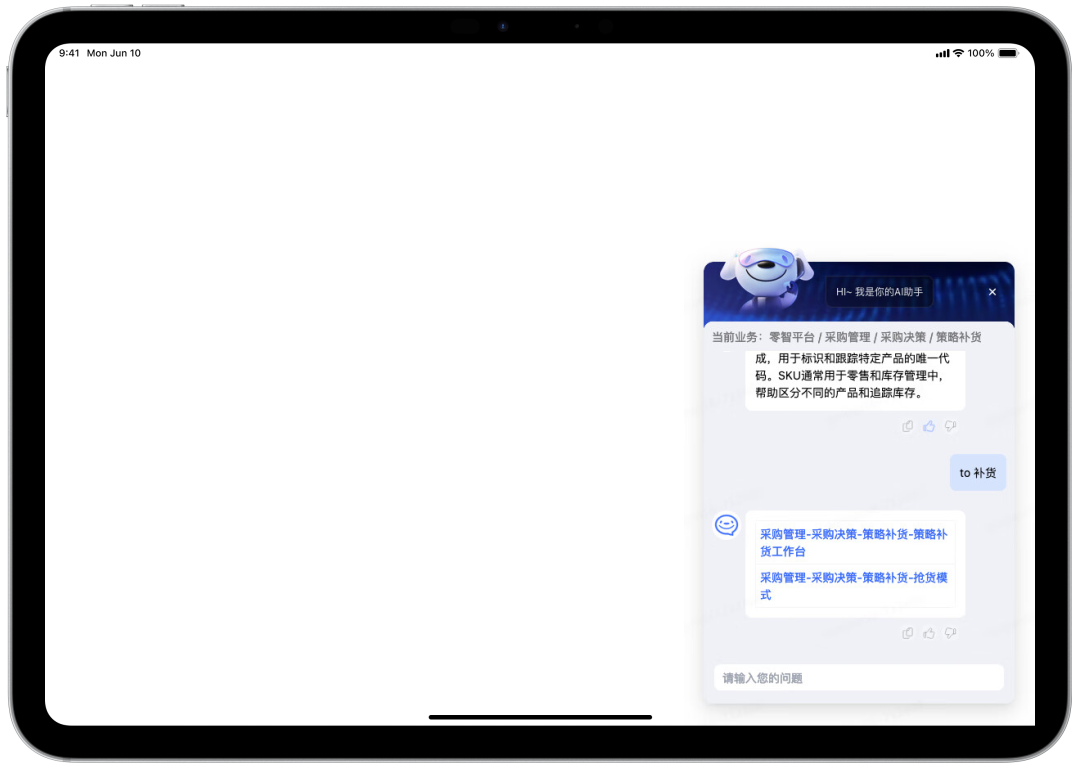 供应链业务 AI 助手 | PC | 在 AIGC 能力基础上,进行了主题的修改和配置,以及替换头部自定义组件。 |