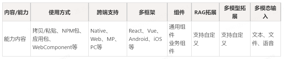 聊天组件 | ✓ | ✓ | ✓ | ✗ | ✗ | ✗ |