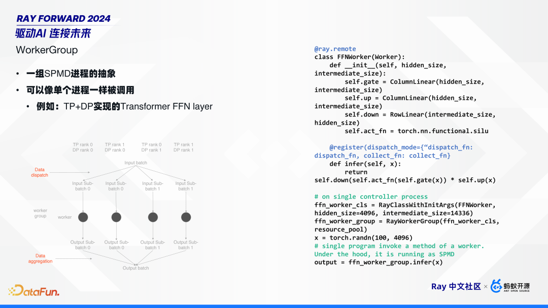 Worker group 负责了数据分发(data dispatch)和聚合(data aggregation)两个重要功能。