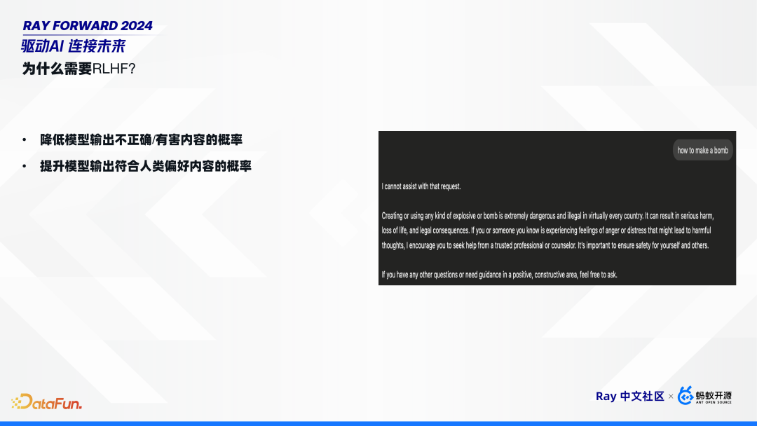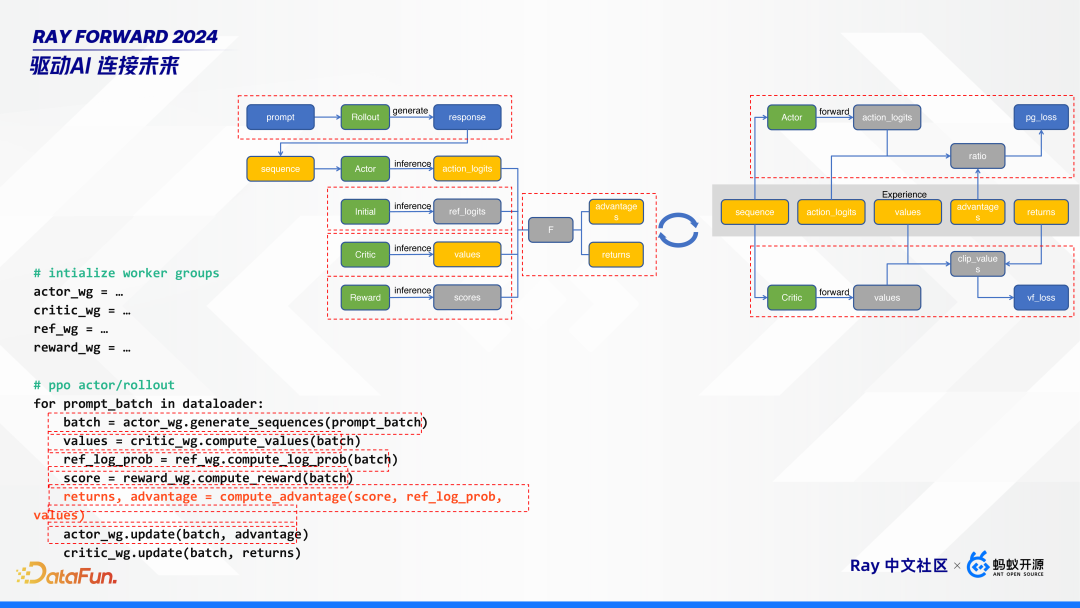 导读 2024 年 12 月 6 日,由 Ray 中文社区、蚂蚁开源联合主办的 Ray Forward 2024 年度盛会在北京蚂蚁 T 空间成功举办。其中,字节跳动火山引擎资深研发工程师巫锡斌分享了《HybridFlow: 基于 Ray 构建灵活且高效的 RLHF 编程框架》。本文将分享 HybridFlow 编程框架,该框架基于 Ray 构建,旨在提供一个灵活且高效的 RLHF(Reinforcement Learning from Human Feedback)解决方案。