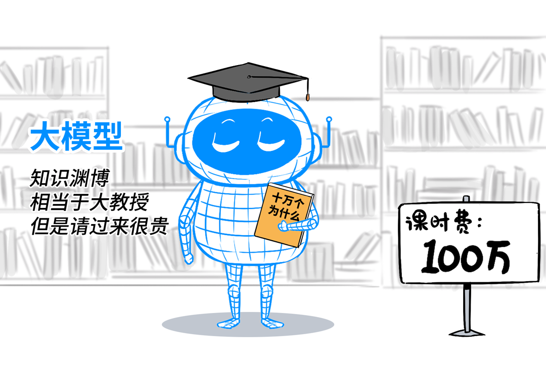 大模型:像一位见多识广、知识储备庞大的“大教授”,无所不知,但是“供养”他很贵。不仅培养他的过程很耗时耗力(训练成本高),请他过来讲课成本也很高,要有很大一笔安家费(部署模型的硬件基础设施,甚至数据中心),还要支付超高的课时费(推理成本高)。
