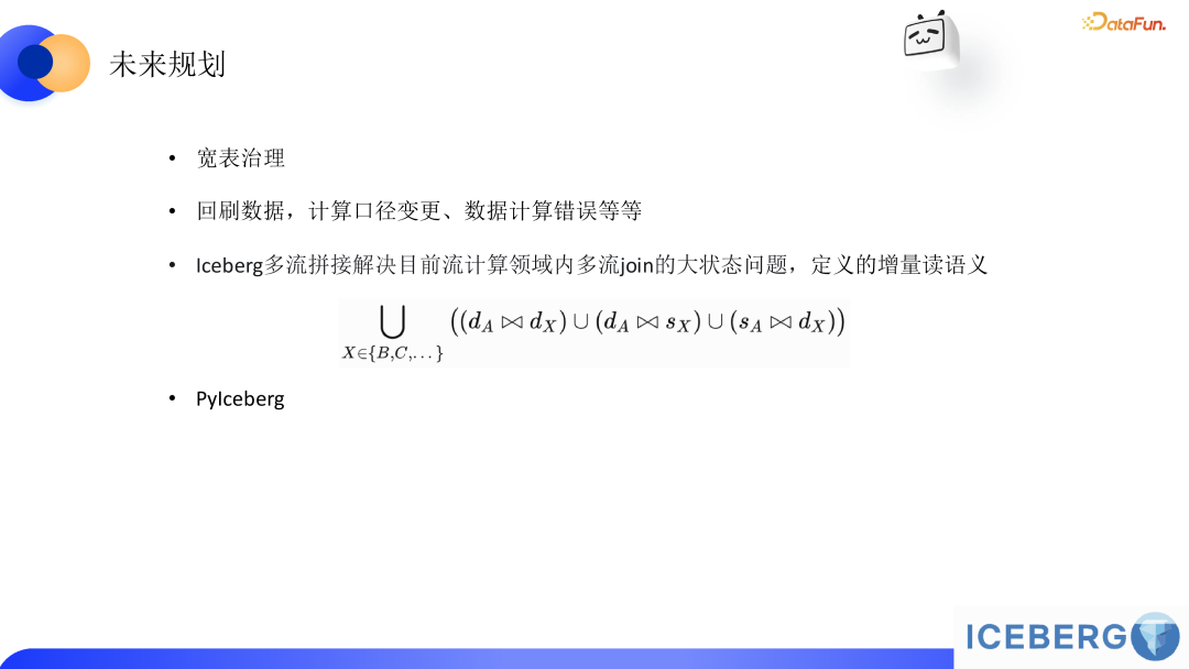 当前流计算领域内的多流 JOIN 操作往往面临大状态管理的问题,而我们计划在 Iceberg 层面定义并支持多流拼接的增量读语义。