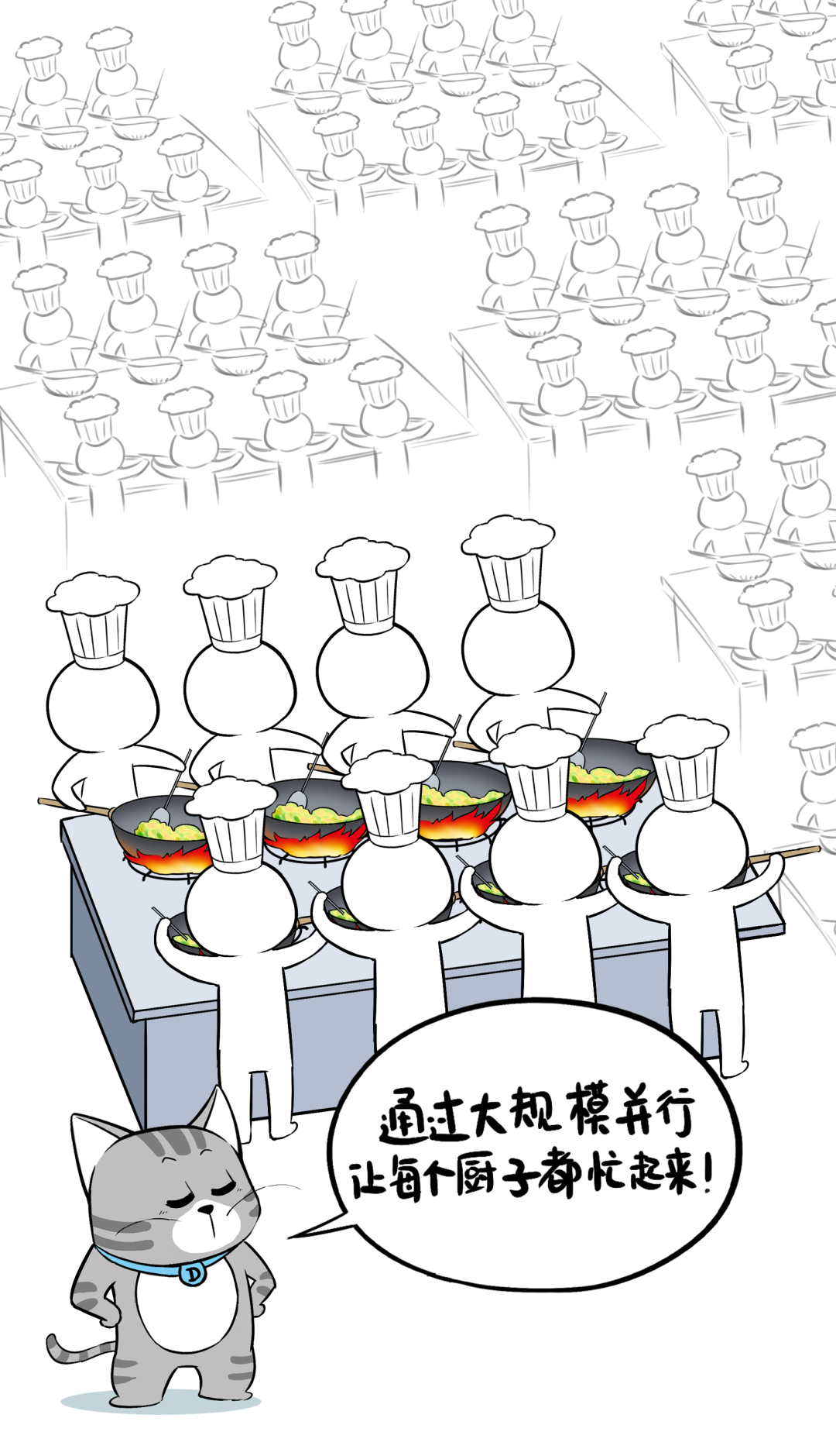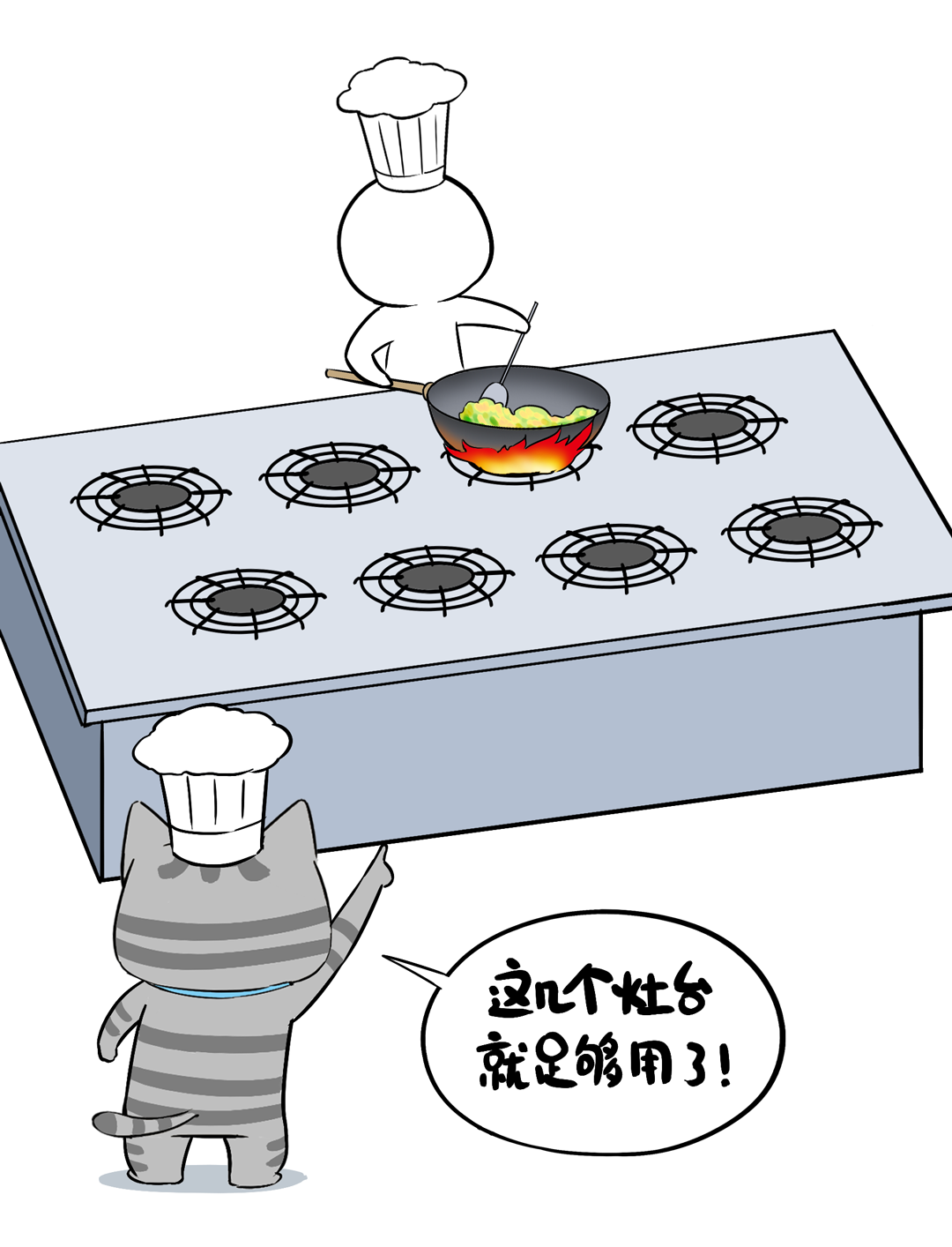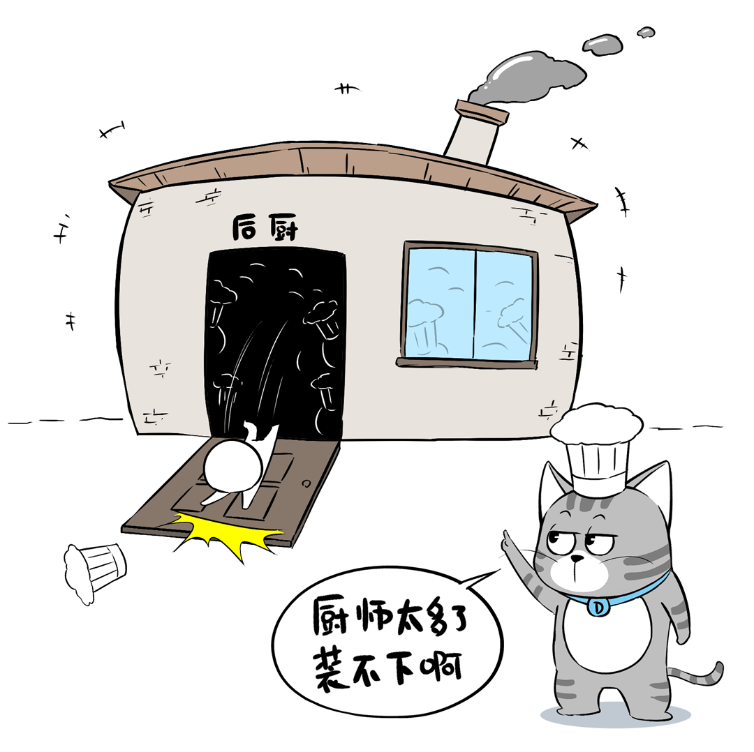 是不是看起来很不错,但是有一点很重要:不参与炒菜的厨子们虽然不占用灶眼,但是还是要挤在后厨随时等待召唤。
