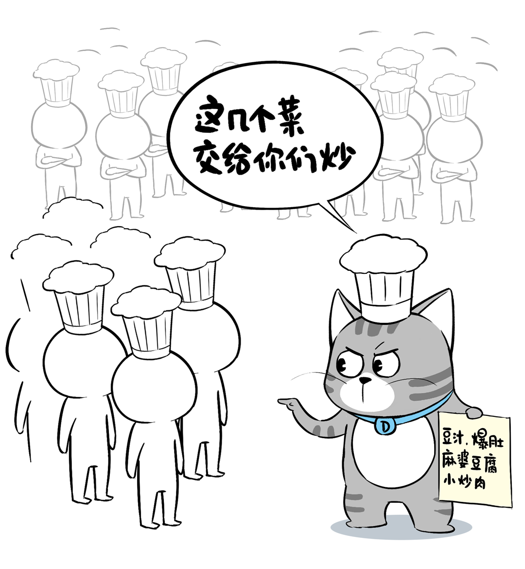其中有个人是厨师长,厨师长不负责炒菜,他清楚地知道每个厨师擅长做什么菜。