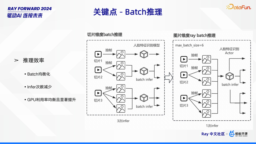 在 Batch 推理方面,推理效率至关重要。实现高效推理主要依赖几个方面:一是 Batch 均衡化,确保数据批次的合理分配;二是减少 Infer 次数,避免不必要的推理操作;通过这两项举措,能够使 GPU 利用率得到均衡且显著的提升,从而整体上提高 Batch 推理的效率。