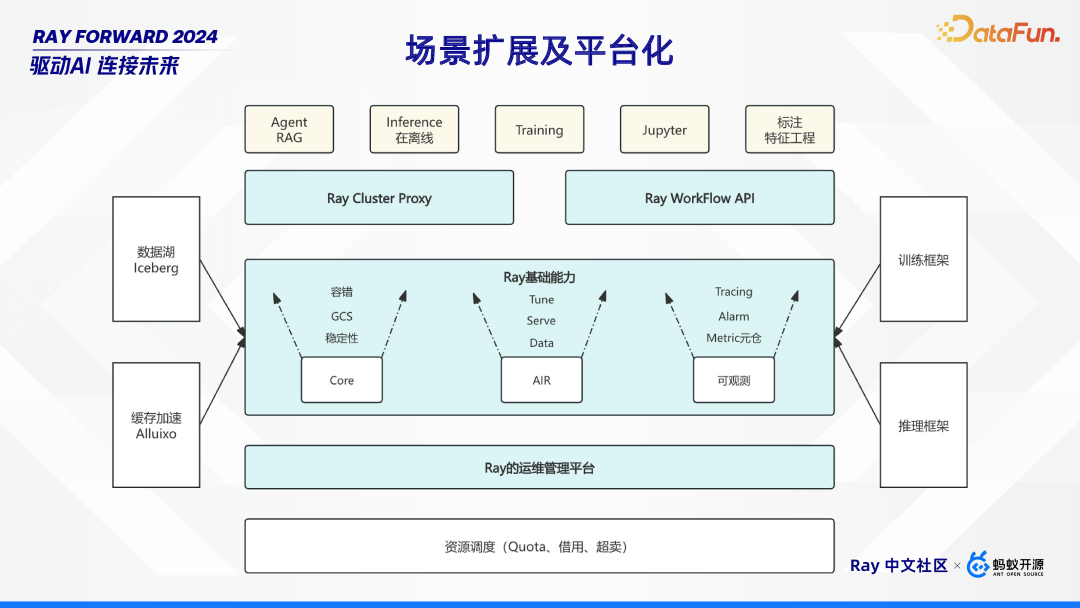未来会提升 Ray 的运维管理能力,对内部应用的一些 AIR、Core、可观测三个维度进行增强。基于目前场景进一步扩展,基于 Ray 对 Agent RAG、训练场景等提供支撑。