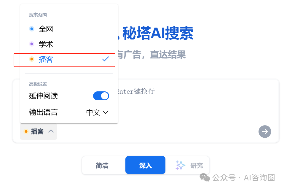 今天跟大家分享秘塔AI搜索近期的一项新功能:播客搜索模式。