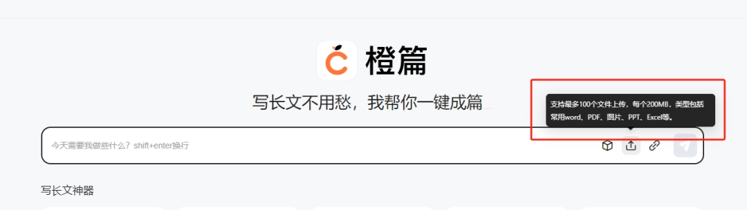 虽然kimi生成大纲效果不差,不过对比下来局限性还是比较大。橙篇能直接整出一篇论文文档的操作,体验下来充满惊喜。橙篇在文件上传能力上支持一次性上传100个文件,单个文件容量最大可达200MB,且支持多种格式混合输入,包括纯图片文件。
