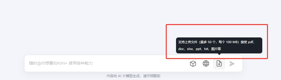 对比下,Kimi文件上传能力差不多,最大的差别是,kimi一次最多只能上传50个文件,单个文件容量仅为100MB,且图片必须带有文字。