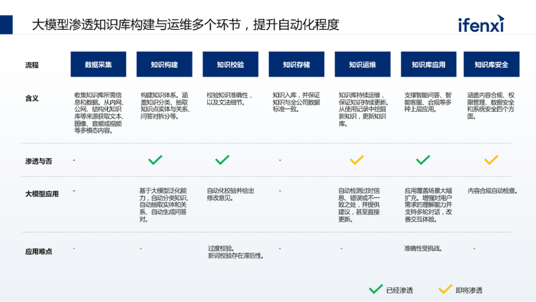 大模型在知识库构建和运维的过程当中,有很多可以实现自动化。比如知识构建中典型的一个案例就是车企,过去做自动驾驶的一些标注,其实都是人工在去做。现在大模型有通识在里边,所以大模型有很多数据标注,这是绝大部分车企在自动驾驶环节要去尝试的一个点。包括它有可能涉及到知识的自动分类、抽取实体关系、自动生成问答,对这些构建过程当中,很多是大模型可以自动实现的,人更多的是审核和选优的过程。