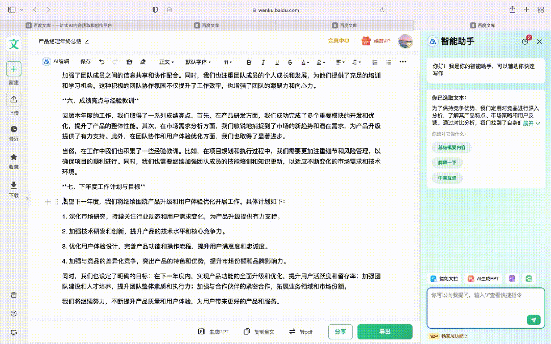 而在百度文库辅助下,我进行了一系列复盘,并得出结论——门槛低、能力全、细节控,让百度文库成为新时代AI生产力的超绝代表!