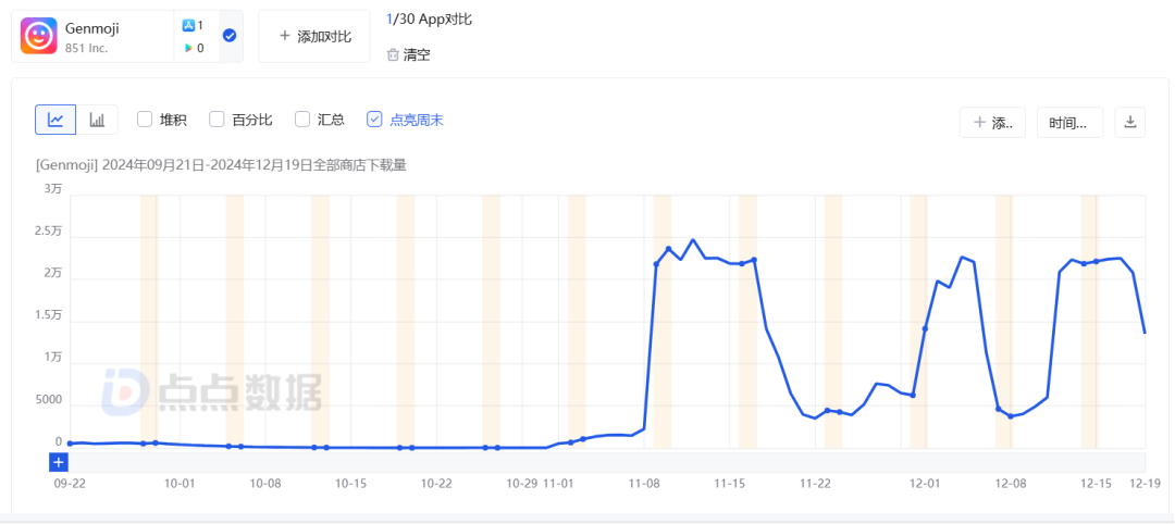 加之和苹果官方功能同名,借到了东风的 Genmoji 数据快速飙升。