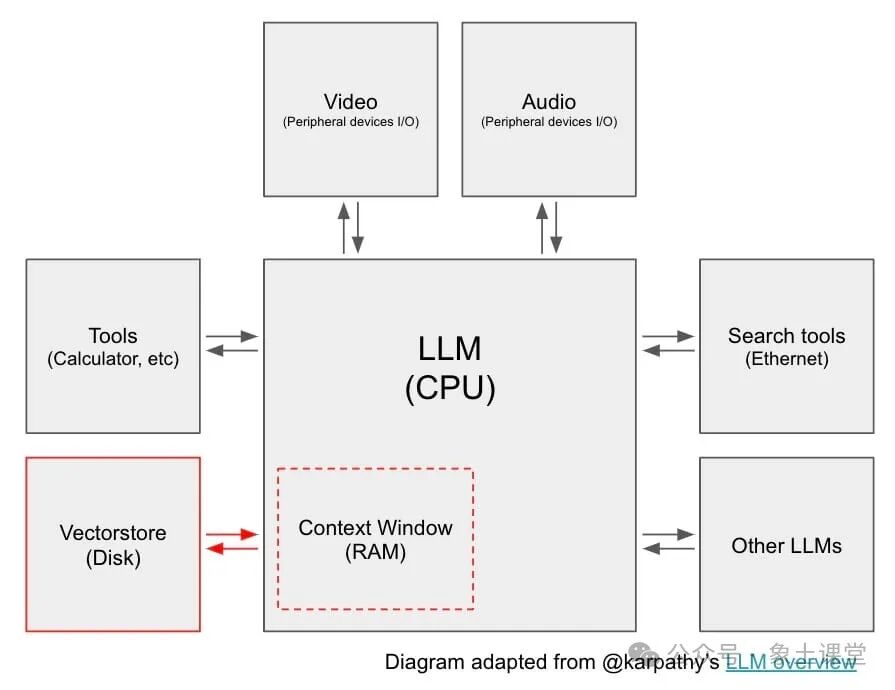 近日OpenAI联合创始人的Andrej Karpathy表示LLM更像是一种新型操作系统的CPU。正如现代计算机具有RAM和文件访问权限一样,LLM也有一个Context Window,可以加载从多个数据源检索到的信息。如下图。