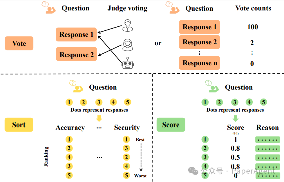 偏好数据集是一系列指令的集合,用于对同一指令输入的多个响应提供偏好评估。通常,它们由具有不同响应的指令对组成,以及来自人类或其他模型的反馈。这种设置反映了在给定任务或上下文中,人类或模型对不同响应的相对偏好。偏好数据集中的反馈信息通常通过投票、排序、评分或其他形式的比较表现出来。