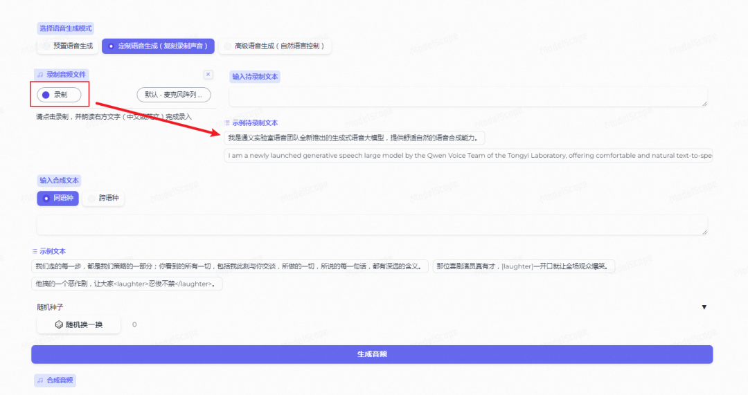 直接录一句话,即可用自己的音色输出更多合成文本,支持下载~