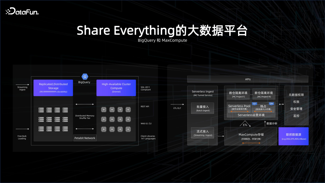 无论是 Google 的 BigQuery 还是 MaxComputer,都是走在 share everything 的架构上面,我们认为只有技术的不断提升,才能够把资源用得更加紧实,将算力成本节省下来,从而让更多企业能够消费得起这些数据,推动数据在模型训练上面的使用。