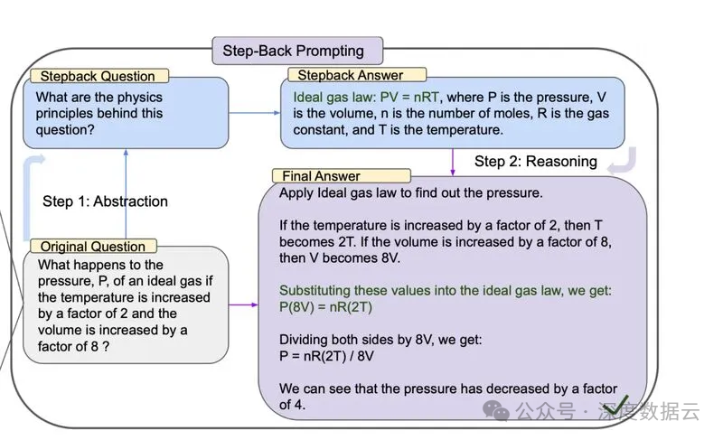 StepBack-prompt方法鼓励语言模型超越特定示例,专注于更广泛的概念和原则。