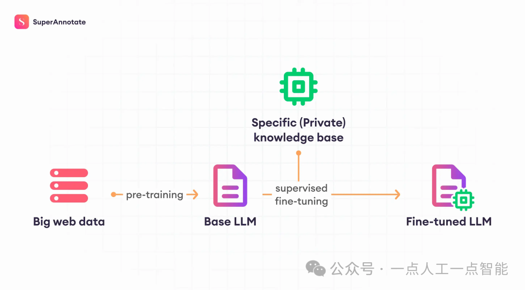 监督微调意味着使用标记数据来更新一个预训练的语言模型,用于处理特定的任务。与非监督方式(无需对数据进行检查)不同,这些数据已经预先进行了检查。通常,语言模型的初始化训练采用的是非监督方式,而微调则使用的是监督方式。4.1 如何进行微调?