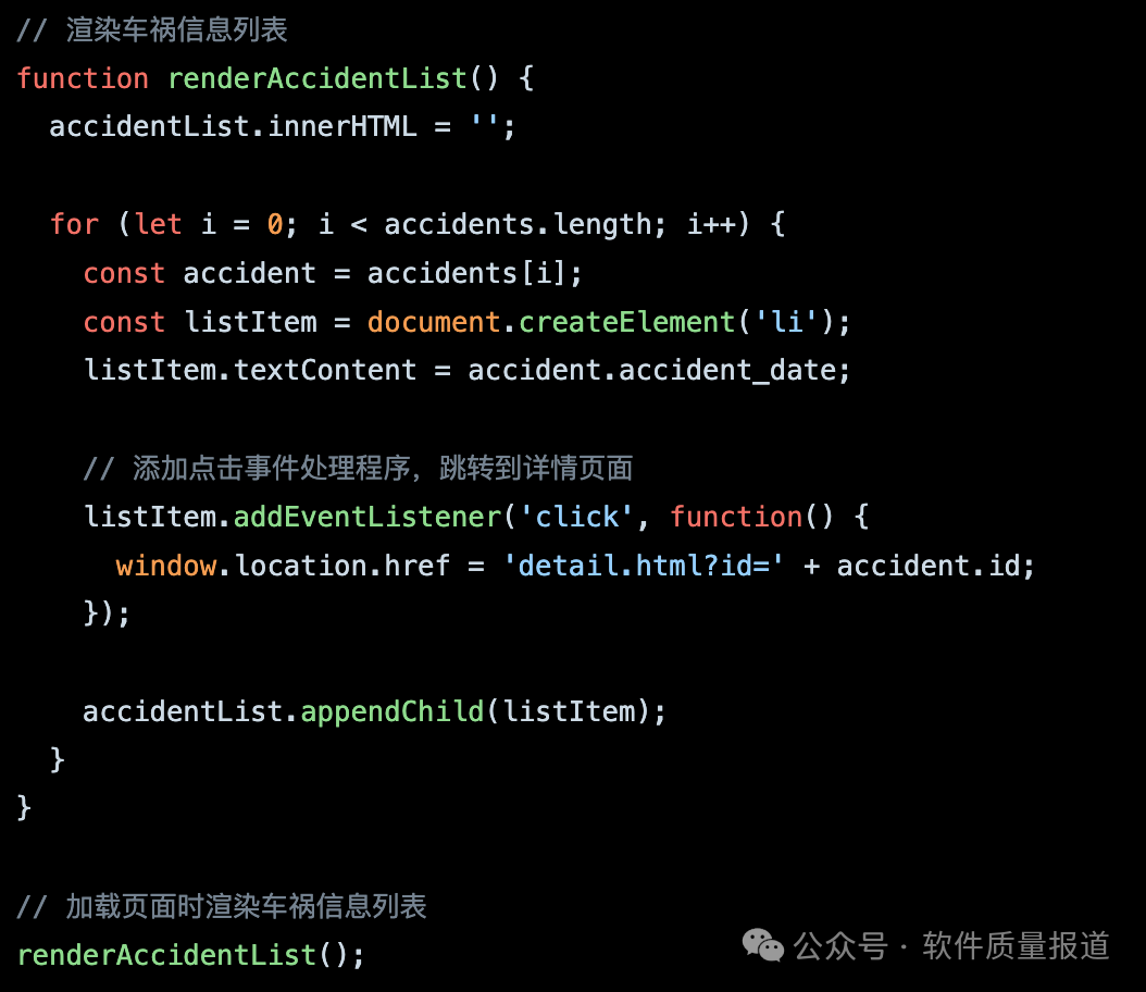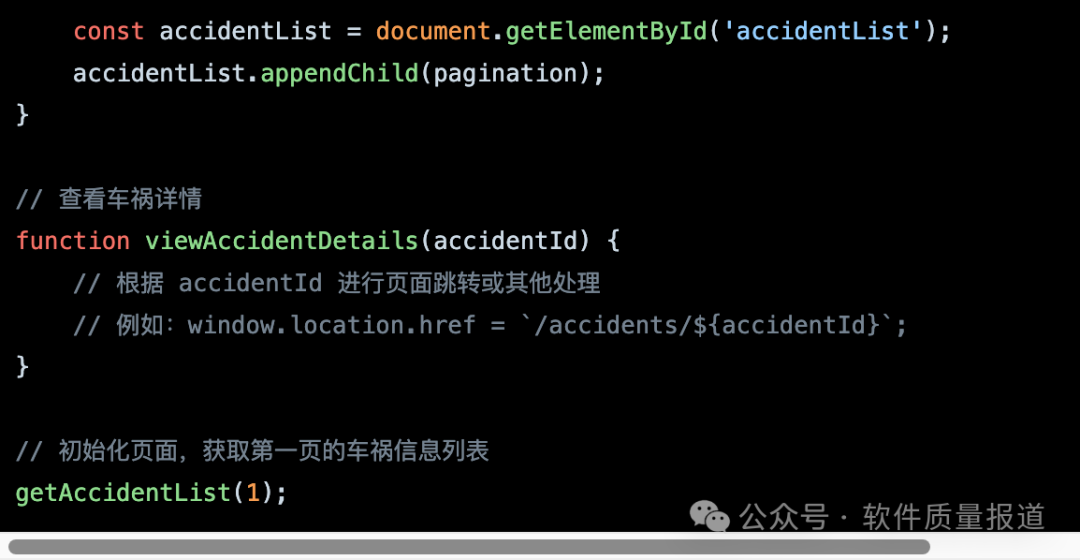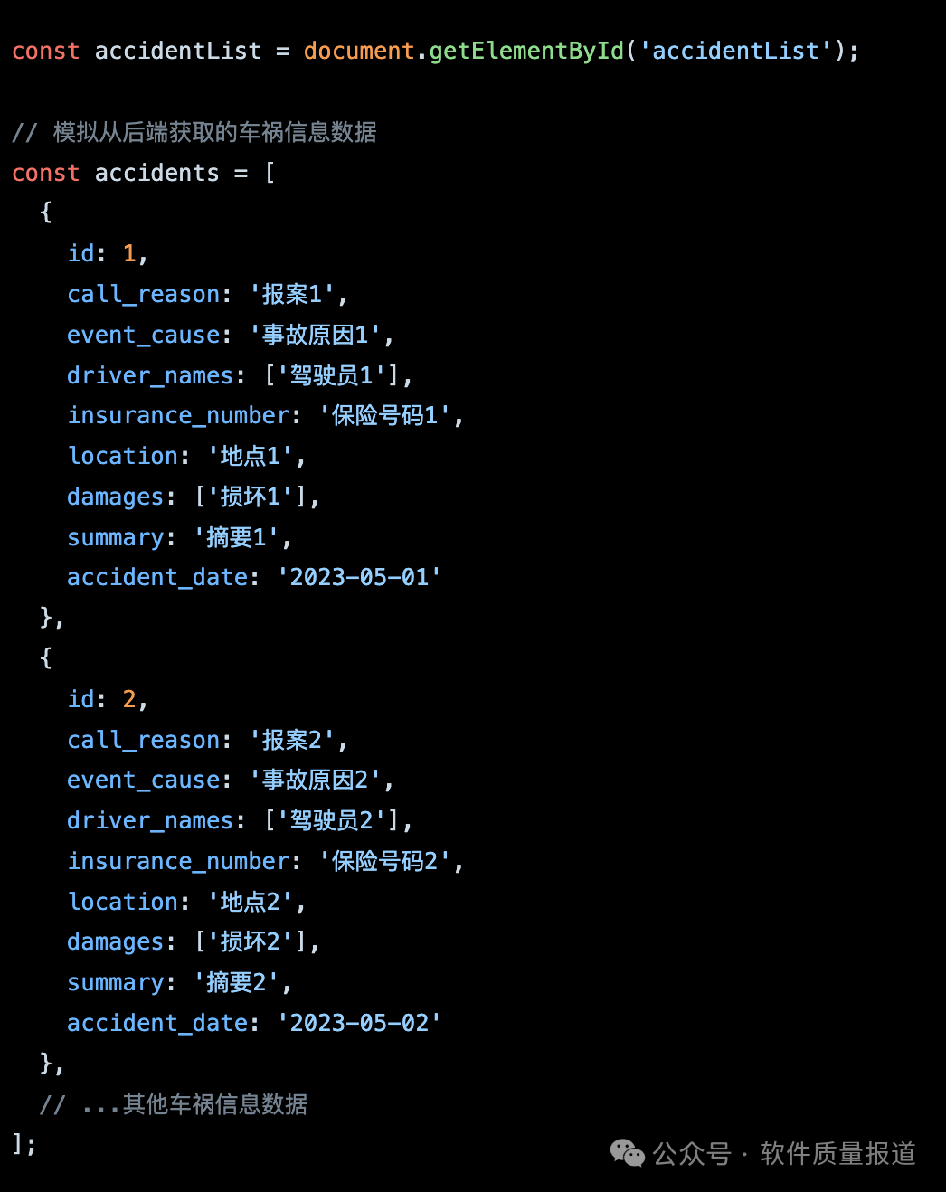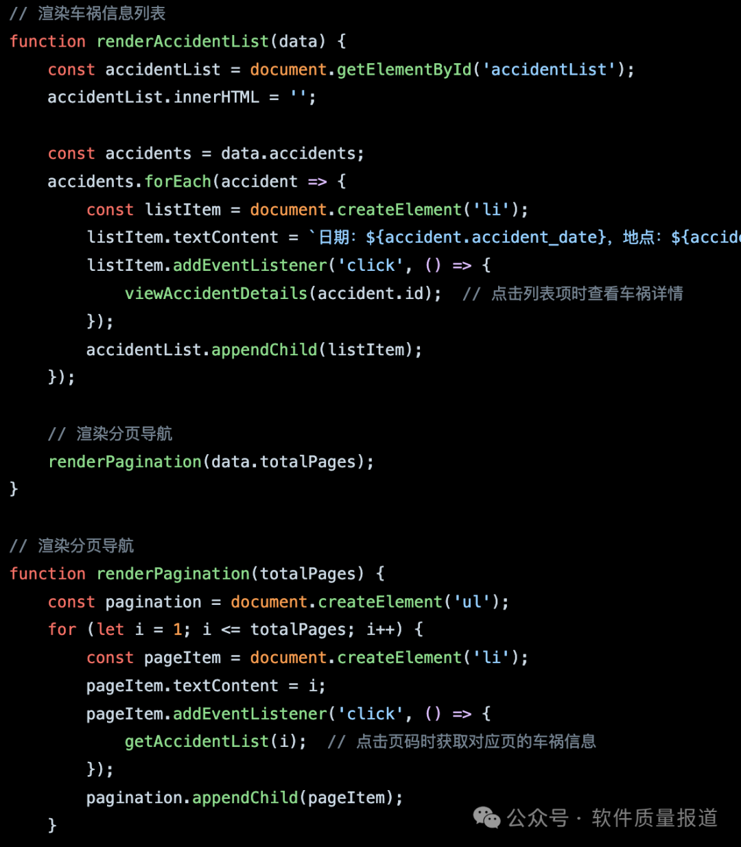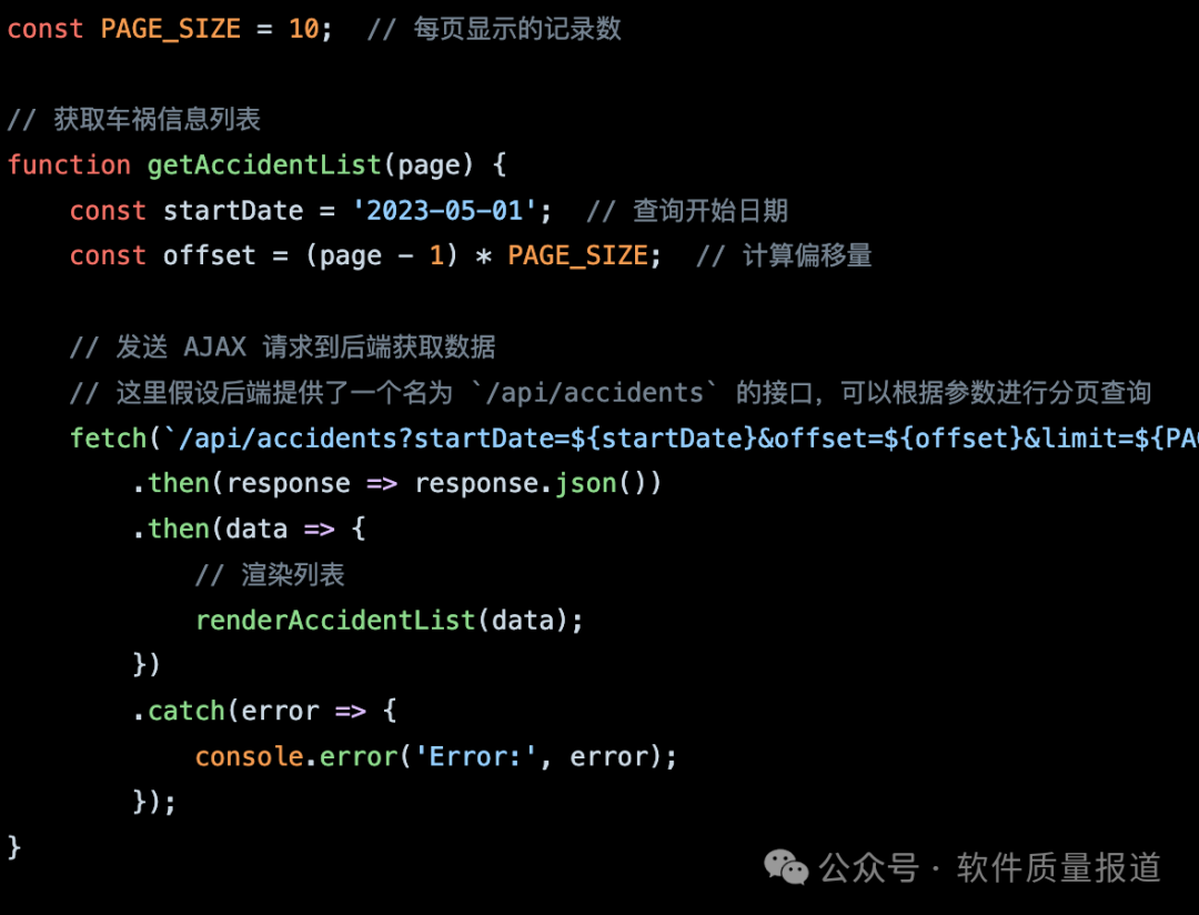 请注意,上述代码假设后端提供了一个名为 /api/accidents的接口,可以接受查询参数并返回相应的车祸信息列表。你需要根据实际情况修改和适应后