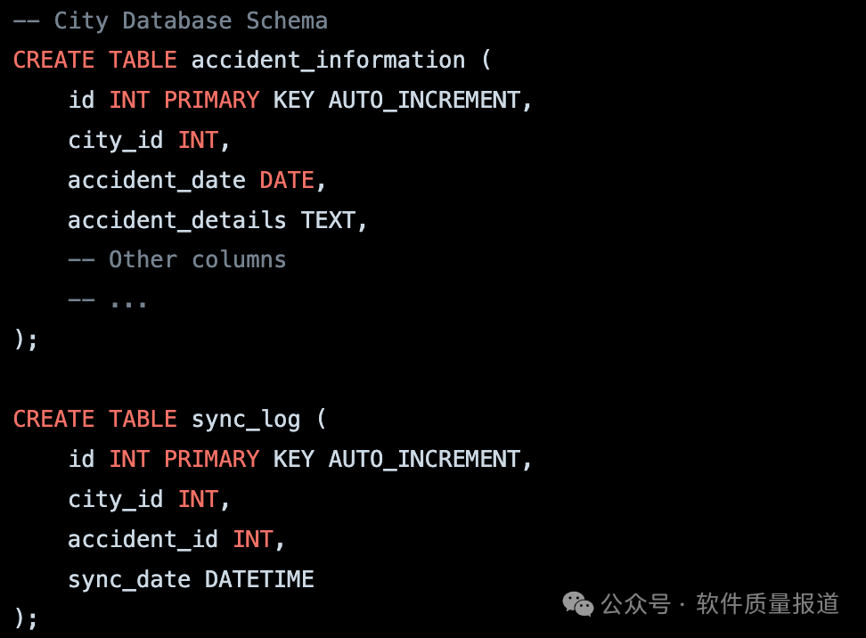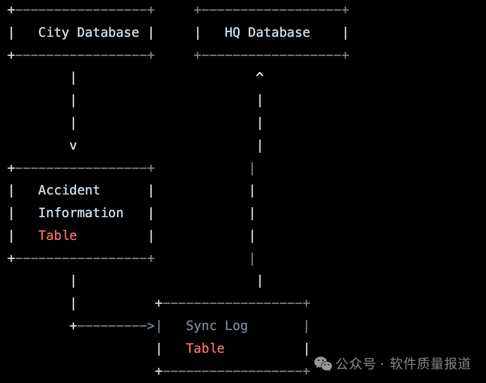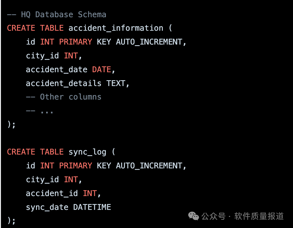 - 在每个城市数据库中,还有一个名为 sync_log的表,用于记录同步到总部数据库的车祸信息。