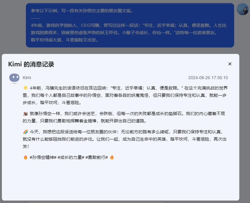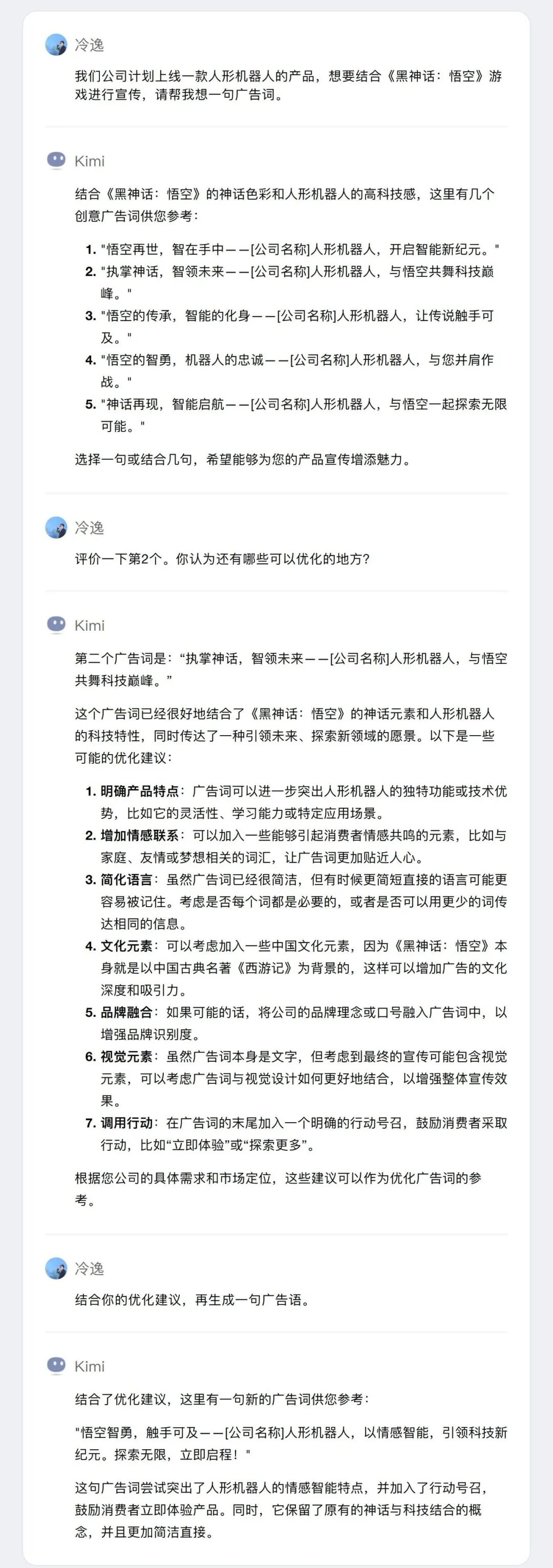 通过添加这些限制性要求,来提升AI生成结果的准确率。建议大家在编写提示词时,所有限制性要求都放在Prompt的最后,这样能够让大模型更“听话”。其背后原理是:大模型的本质是在做文本补全,生成内容的输出会更倾向于距离更近的语境,如果利用 LIME(一种解释机器学习模型预测的算法) 这样的模型解释算法分析,距离更近的文本间权重往往更大,这在Transofrmer中的Attention权重上可以清晰的看到。你好,我是一个对人工智能技术非常感兴趣的新媒体编辑,但是没有相关的技术背景。我想请你帮我深入理解一篇最新发表的大模型研究论文,以便更好地把握该领域的技术发展。请从以下7个方面对论文进行详细解读:1、论文的研究目标是什么?想要解决什么实际问题?这个问题对于人工智能行业发展有什么重要意义?2、论文提出了哪些新的思路、方法或模型?跟现有的模型相比有什么特点和优势?请尽可能参考论文中的细节进行分析。3、论文通过什么实验来验证所提出模型的有效性?实验是如何设计的?实验数据和结果如何?请引用关键数据加以说明。4、论文的研究成果将给人工智能行业带来什么影响?有哪些潜在的应用场景和商业机会?作为媒体人我应该关注哪些方面?5、未来在该研究方向上还有哪些值得进一步探索的问题和挑战?这可能催生出什么新的技术和商业机会?6、从critical thinking的视角看,这篇论文还存在哪些不足及缺失?又有哪些需要进一步验证和存疑的?7、作为非技术背景的读者,我应该从这篇论文中学到什么,有哪些启发?你认为我还需要补充了解哪些背景知识?请用1000-1500字左右的篇幅,对论文进行深入解读。在讲述过程中,请多引用论文中的细节内容、关键数据和实验结果,帮助我清楚地理解论文的创新性贡献。同时也请从技术和商业的角度,分析其给人工智能领域和产业界带来的影响。如果论文中有一些技术概念我可能不太了解,也请给出通俗的解释。1、用三级标题对应以上7个问题,清晰划分不同部分。2、使用Markdown格式,适当加入列表、加粗等排版元素。3、引用原文时请使用blockquote的引用格式。如果你不确定大模型是否真正理解了你的问题,我们可以通过提问来确认。比如,“我这样描述清楚了吗?”或者“你能明白我的意思吗?”反馈和确认,可以帮助我们检验大模型是否真正理解了自己的意图,从而减少误解,提高沟通效率。有效沟通:“我这样描述清楚了吗?如果有任何不明白的地方,请告诉我,我可以提供更多的细节。”让大模型评估自己的输出(output)质量,反思哪些地方还可以优化,然后重新输出,得到更优的回答。用户:我司计划上线一款人形机器人产品,想结合《黑神话:悟空》游戏进行宣传,帮我想一句广告词。初版:执掌神话,智领未来——[公司名称]人形机器人,与悟空共舞科技巅峰。优化版:悟空智勇,触手可及——[公司名称]人形机器人,以情感智能,引领科技新纪元。探索无限,立即启程!