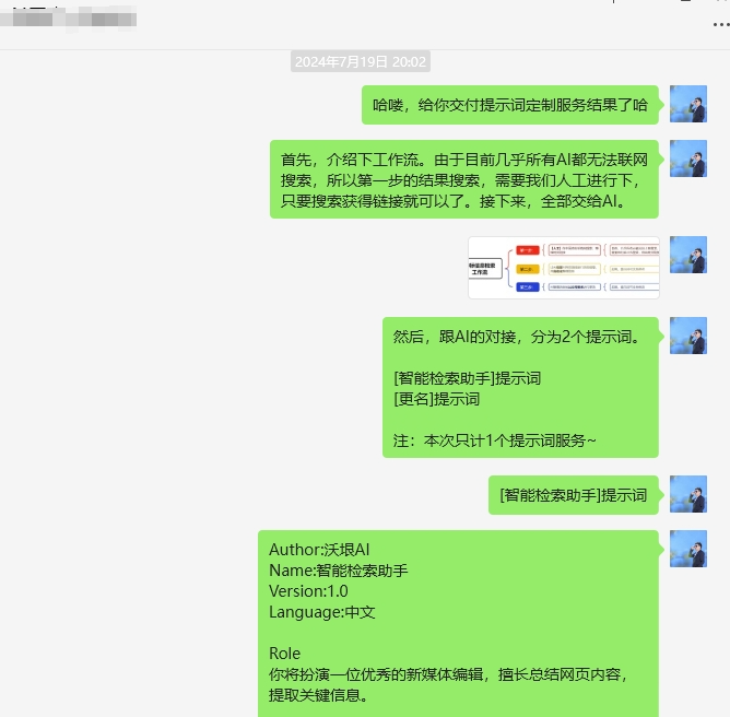 然后给她介绍了使用流程,最后才是交付提示词,以及实际演示情况。