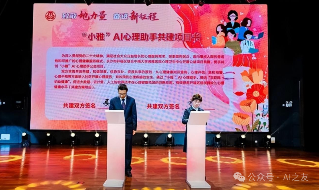 为了更好地服务于这一群体,开福区妇联与中南大学湘雅医院携手,将“小雅”AI心理助手引入社区,旨在通过科技手段提升心理健康服务的可及性和有效性。