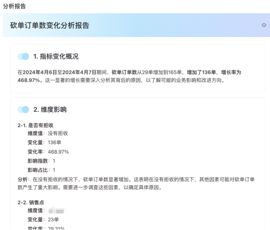 问题定位:智能督导助手能够准确定位业绩指标的下滑或波动的原因,帮助督导快速识别关键因素。