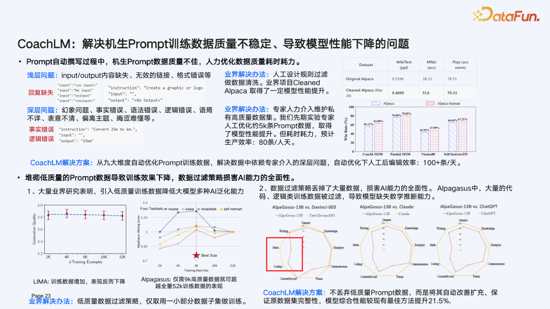 这个数据飞轮的核心是 Prompt 优化,通过自动优化模型 CoachLM 对训练数据进行优化。