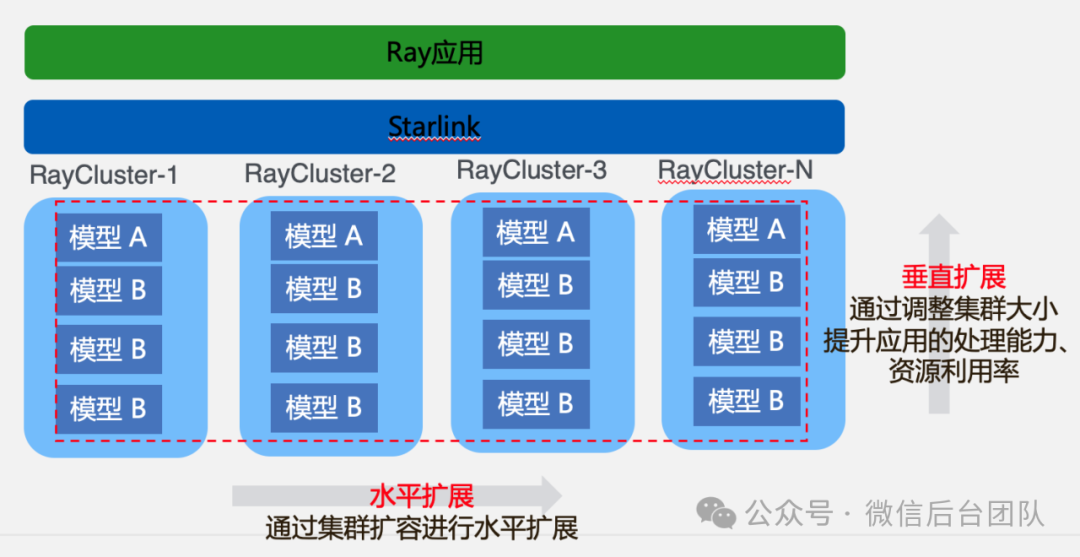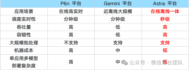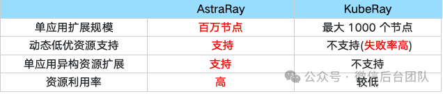 P6n是基于 Kubernetes微服务部署平台,通过自动化编排和弹性扩缩容机制,很好的解决了在线高实时的后台服务运维自动化问题,但不支持大规模的批处理服务,单应用多模型的部署复杂度较高,机器成本较高,不适合“在离线一体”的 AI计算场景。Gemini 是基于 kubernetes 的大数据平台,适合处理离线大规模的数据清洗和模型训练,但是由于调度的实时性不够,不适合高实时性、高吞吐的和高可靠的AI计算场景。Astra 平台要实现高实时、高吞吐、高可靠、低成本的 AI 计算平台,需要解决如下几个核心问题:我们基于 Ray 计算底座,解决了上述三个核心问题,构建出适合 AI 计算平台:AstraRay,在微信内进行了大规模 AI 应用部署的实践。AstraRay 相比社区版本Ray(KubeRay) 有以下改进: