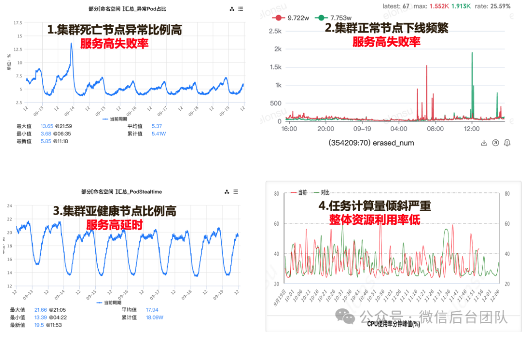 AstraRay 大量接入低价或免费资源,pod 稳定性较差,日常会出现较高的资源驱逐率和亚健康的情况,直接使用会导致服务失败率高、延时高。另外,用传统的调度方法调度 AI 计算任务很容易出现计算倾斜,从而导致整体资源利用率低。我们通过更快的容灾调度解决服务失败率高的问题,通过更优的调度算法来解决服务延时高和资源利用率低的问题。