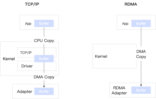 eRDMA是阿里云自研的云上弹性RDMA网络,底层链路复用VPC网络,采用全栈自研的拥塞控制CC(Congestion Control)算法,享有传统RDMA网络高吞吐、低延迟特性的同时,可支持秒级的大规模RDMA组网。可兼容传统HPC应用、AI应用以及传统TCP/IP应用。